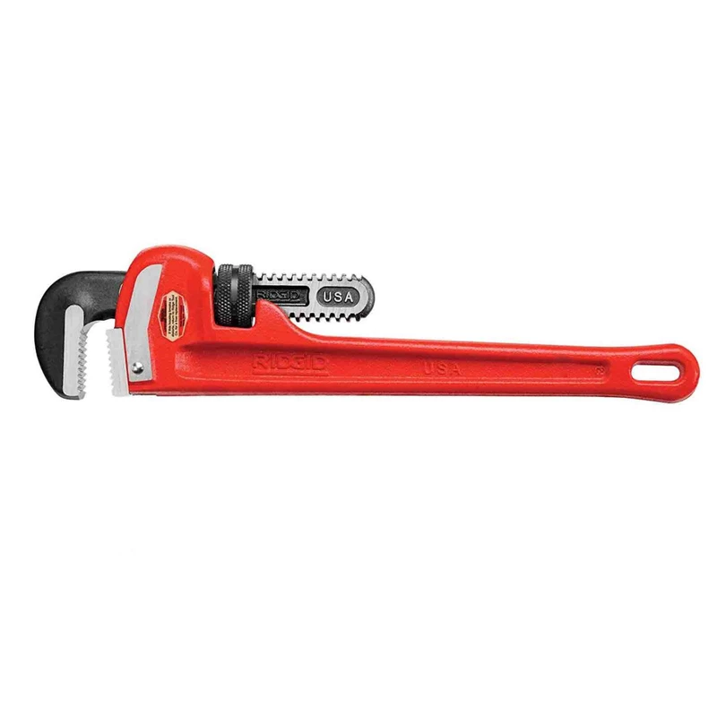 آچار شلاقی تک دسته 18 اینچ از برند «ریجید» (Ridgid)، ابزاری باکیفیت ساخت بالا است که مناسب برای کارهای سنگین و صنعتی است. این آچار لوله گیر مناسب برای لوله هایی با قطر 6 تا 45 میلی متر و با دسته I شکل تک رنگ است.فک های این آچار شلاقی 18 اینچ ریجید ساخته شده از چدن داکتیل با دوام مادام العمر و دارای پیچ تنظیم دقیق و روان است. این محصول Ridgid دارای طول دسته 450 میلی متر و ساخت کشور آمریکا میباشد.آچار شلاقی های شرکت ریجید(RIDGID) آمریکا مشهورترین آچارهای شلاقی در جهان هستند که به علت کیفیت، سختی بی نظیر، ساختار مناسب برای به کارگیری در امور مختلف و همچنین ثبات کیفیت اولیه برای 80 سال متمادی اعتماد مشاغل در حوزه صنعت لوله را از آن خود کرده است. تمام آچارهای ریجید بر اساس همان طرح کهنه نشدنی و ابداع شده توسط شرکت ریجید در سال 1923 می باشند که اغلب مورد تقلید قرار می گیرند اما تا کنون هیچ برندی نتوانسته است جای این محصولات را در بازار ابزار آلات بگیرد. این محصول در سایز 6 اینچ، برای امور سبکتر و کوچکتر مورد استفاده قرار می گیرد.