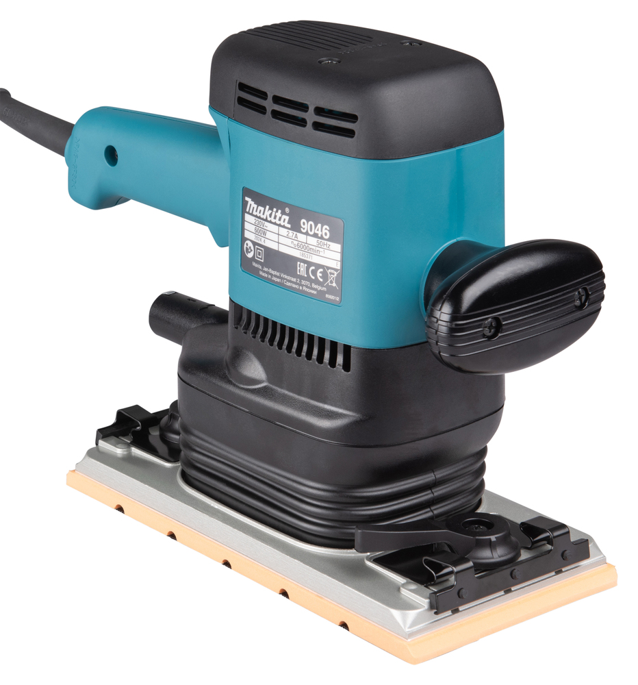 سمباده لرزان ماکیتا مدل 9046 یک نمونه دیگر از انواع دستگاه های سمباده ساخته شده توسط شرکت ماکیتا می باشد. این دستگاه در گروه ابزار آلات نجاری قرار می گیرد. سمباده لرزان ماکیتا مدل 9046 با قدرت 600 وات کار می کند. صفحه این سمباده لرزان با سرعت 6000 دور در دقیقه به حرکت در می آید. از دستگاه های سمباده زن برای صاف و یک دست کردن سطوح چوبی استفاده می شود. در قسمت پشت سنباده لرزان ماکیتا مدل 9046 یک عدد کیسه قرار دارد تا گرد و غبار ایجاد شده در حین کار را جمع آوری کند. برای کار با این دستگاه سمباده باید از صفحات سمباده با ابعاد 280×115 میلیمتر استفاده کنید. دستگاه های سمباده زن در کارگاه های نجاری و تولید دکورهای چوبی استفاده فراوانی می شود. سمباده لرزان مدل 9046 قابلیت برداشتن رنگ از روی سطوح و همچنین سمباده زدن چوب های سخت را دارد.