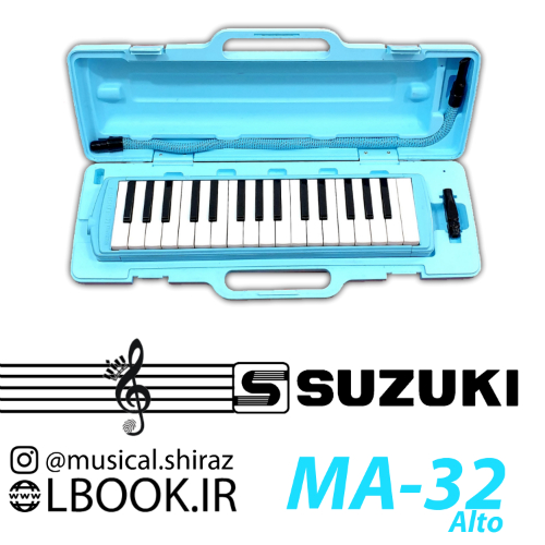 ملودیکا سوزوکی سری MA-32 Alto آلتو آبی ژاپن اصل کلکسیونی دارای 32 كلاويه (دو و نیم اکتاو) با صدایی گرم و دلنشین این مدل در دو گام سو‍رانو و آلتو میباشد و در دو رنگ زرد و آبی در گالری موزیکال موجود میباشد.